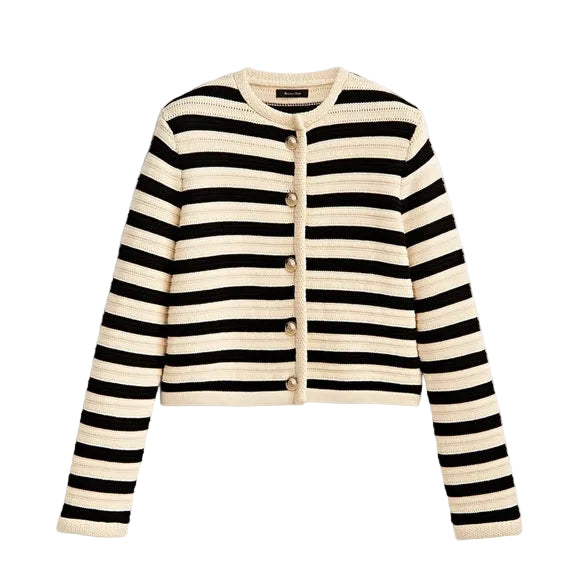 Women Striped Knitted Sweater | Striped Cardigan | Round Neck