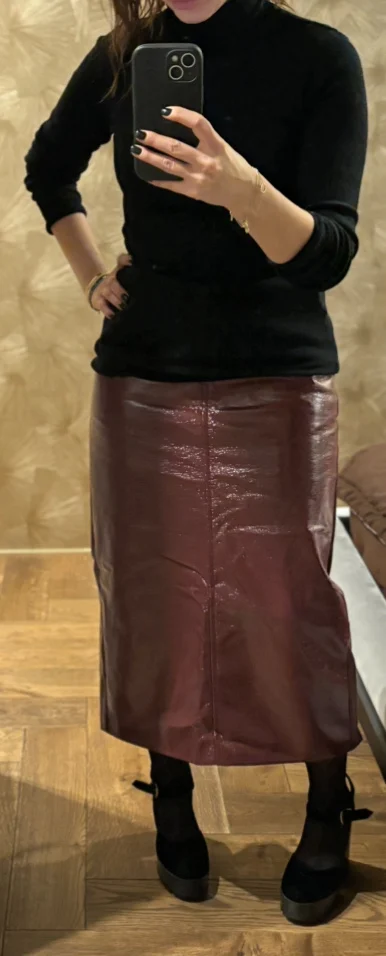The skirt is gorgeous, and apparently the next man took into account all the comments and made a zipper to match the skirt)) on his parameters from-64, O-86 creeping size XS, sat down well, in the hips isok ) in the photo it is immediately after receipt, not ironed.