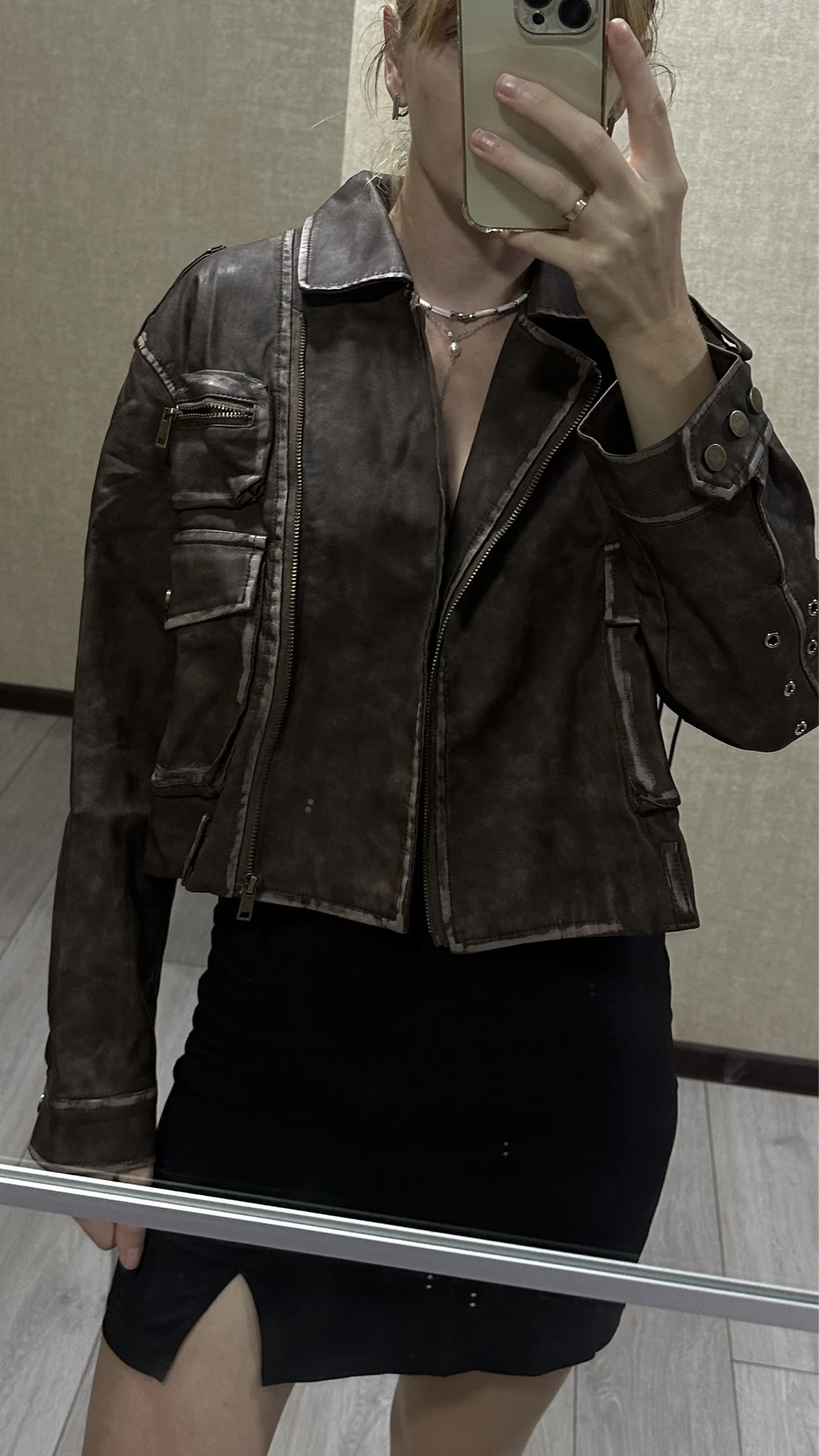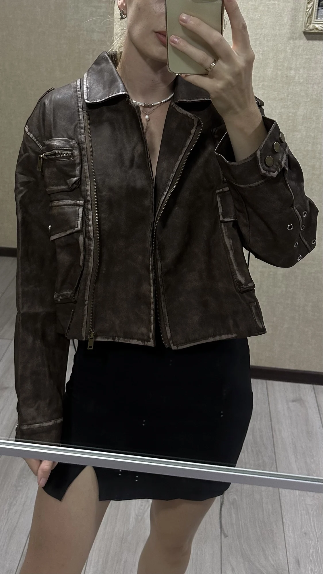 Beautiful jacket, soft, stylish! Sat down great! Height 173, OG 84, from 65
