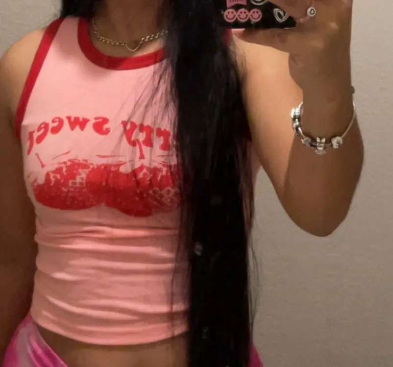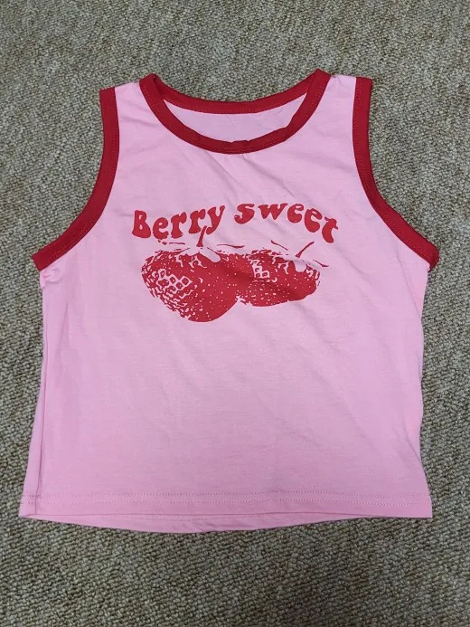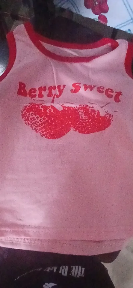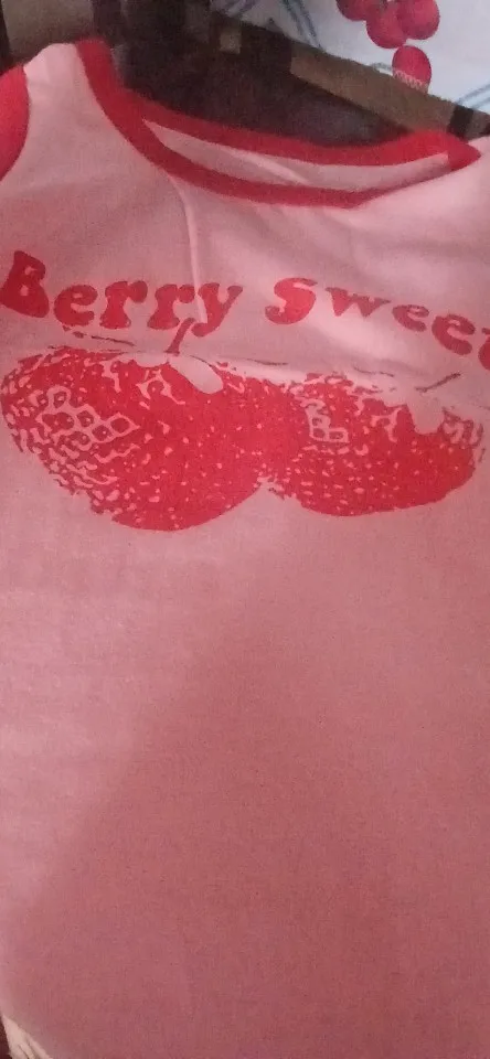 Very cute t-shirt. Nice bubblegum pink color with deep red graphic and accents.