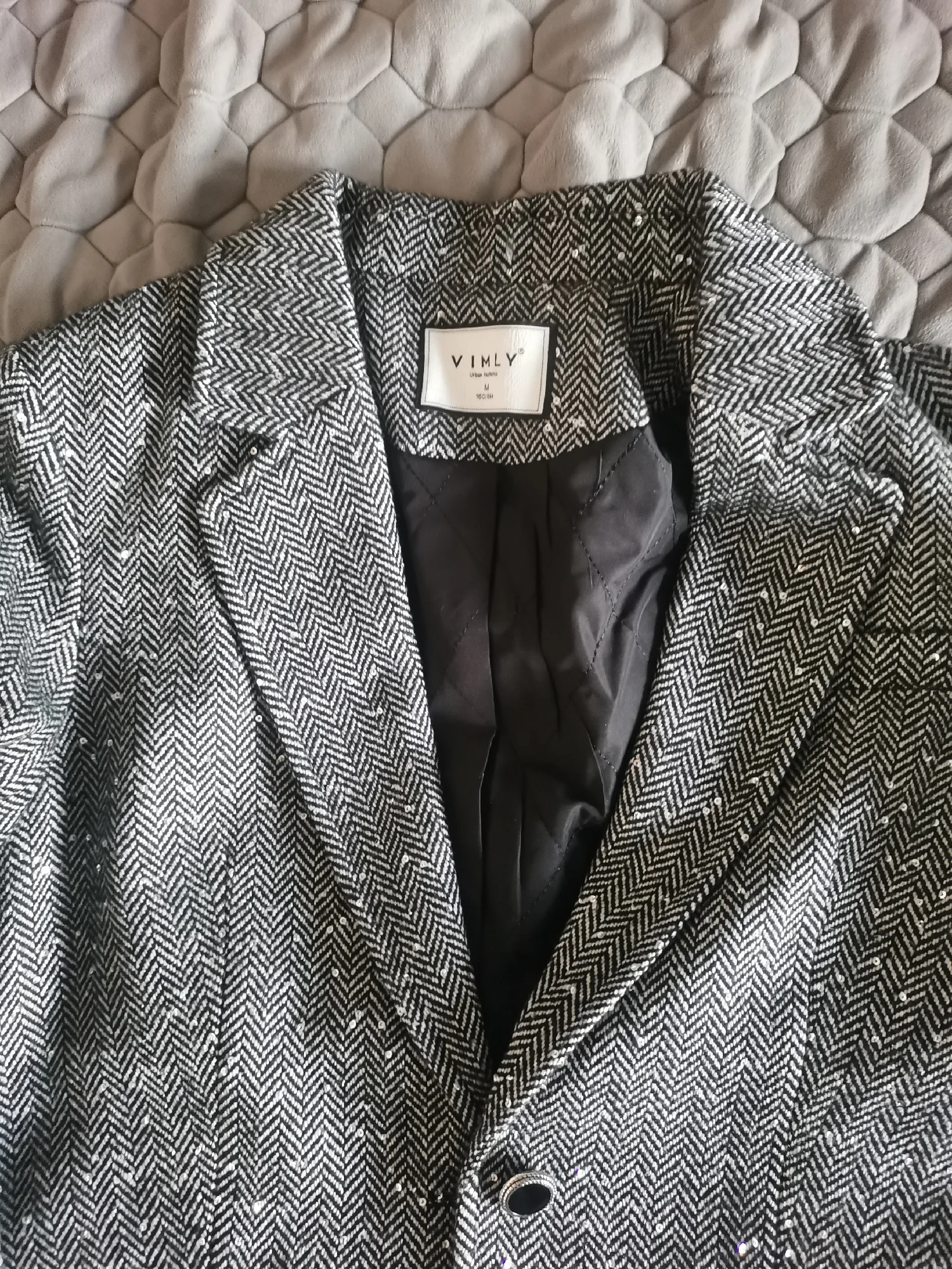 The jacket is very high quality, warm, beautiful shiny, it is with sequins. You can remove yourself, if you plan to wear it for every day, carefully sews. I wanted to order it for a long time and did not dare and I do not regret it. I ordered s for my parameters 88-65-88 and I feel good, the length is really right, the width is a little free. arrived in 3 days, the track was tracked to the end. Thank you.