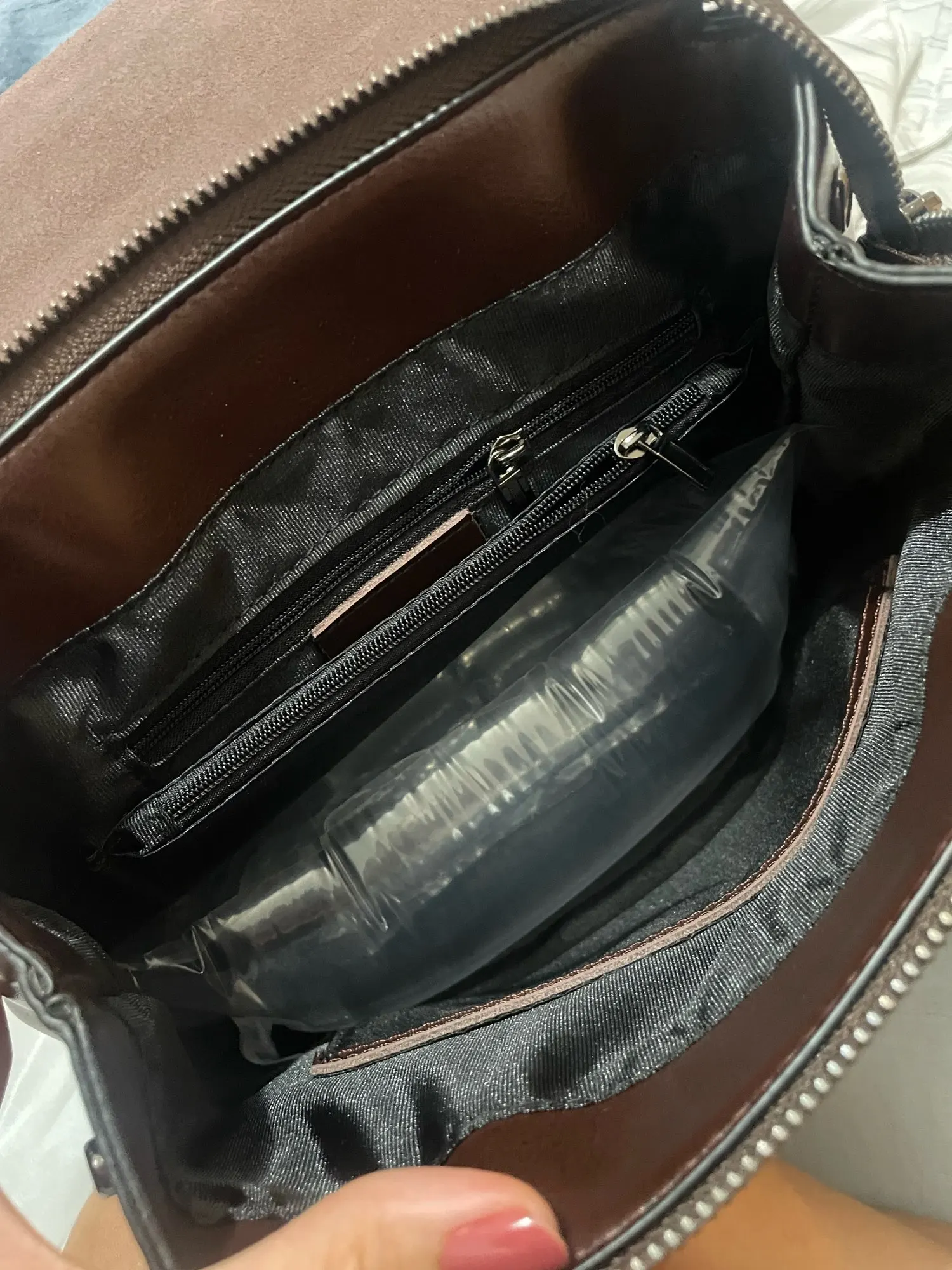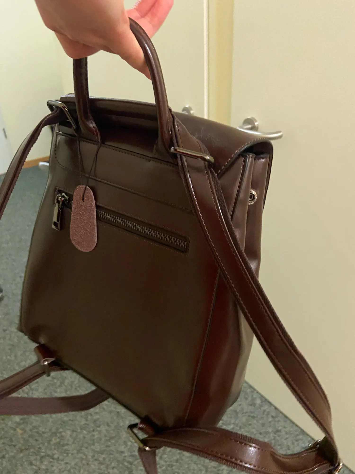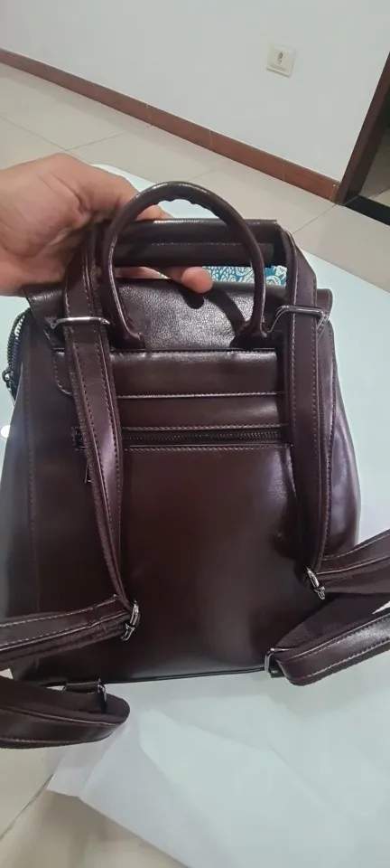 I loved this backpack, exceeded my expectations! She seems to be really leather, very well finished. It is all divided into compartments, both outside and inside. Outside she has 3 pockets, 2 in front and 1 behind anti-theft. On the inside she has 3 partitions and 3 pockets, being 2 pockets and 1 pocket/partition. The finishing materials are very good too. The handles are leather and fabric, which gives more comfort and resistance to the bag; and has a thicker leather Constitution on the top, close to the hand strap, exactly to protect the bag, in case you carry too much weight in it. About the store, sent super fast and the bag came well packed. Was delivered here in Paraiba, John person, in 5 days, very fast! Can buy without fear!😍❣️